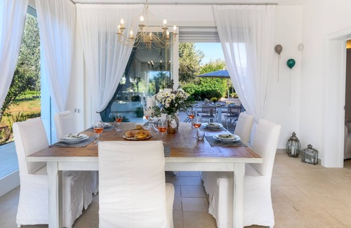 Among the olive trees and clear waters of the Ionian Coast, in Torre San Giovanni, stands Villa Picalò, a splendid residence that combines modern architecture and the traditional forms of the typical Salento pajara, a dry stone construction. The perfect place to experience unique and unforgettable days for those who love the quiet and tranquillity of the countryside, but do not wish to forgo a refined environment. The area surrounding the villa is full of charm: once past the imposing entrance gate, a long driveway flanked by Lecce stone columns leads to the central body of the villa, a residence of about 150 sq m overlooking the magnificent expanse of olive groves and completed by a splendid renovated trullo, the traditional dry stone hut with conical roof, and an adjoining annex, complete with kitchen and sitting room. The elegant, fully-equipped infinity pool for the exclusive use of guests enhances the outdoor spaces rich in Mediterranean vegetation. The barbecue in local stone is perfect for organising open-air meals, immersed in the magic of the olive groves. Villa Picalò, just a few minutes by car from the tropical-coloured waters of the coast, stands in a strategic position within easy reach of the main artistic, architectural and natural beauties of the Apulian region. Historic Ugento, the Beautiful City of Gallipoli and renowned Santa Maria di Leuca are just some of the more characteristic localities reachable from the property.