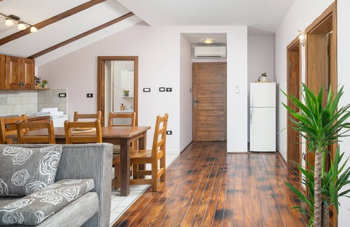 Interior is separated in 3 units. On the ground floor are placed a large living room with 3 bedrooms, and on the first floor are placed 2 separated apartments. All units are air-conditioned. House is ideal for large group, it can accommodate up to 16 people. Everything is decorated in traditional rustic style. Dark wood dominates in the rooms with old ceiling beams.
