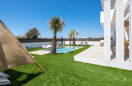Villa Sofia Martini is a stylish 3 bedroom villa with modern furnishings throughout. Located just a 10 minute walk from a number of shops and restaurants, you’ll have everything you need at hand. The villa offers a private jacuzzi, an inviting pool surrounded with chill out sun loungers and a lovely alfresco dining area. The popular Rhodes Town is only a 20 minute drive away making Villa Sofia Martini a great choice for your holiday in the sun. WiFi, air conditioning/ heating in the bedrooms, lounge and kitchen are included.