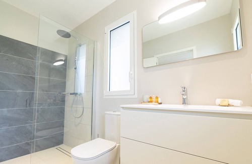 This superb villa consists of a ground floor with kitchen, laundry room, living room and master bedroom. On the first floor, 3 bedrooms each with their own bathroom, and a magnificent terrace on the sea side for even more space and tranquillity. The car park secured by an electric gate will allow you to park your car safely.