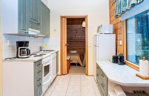 Log cottage, built in 2002, bedroom 1: 2 beds, bedroom 2: 2 beds, bedroom 3: 2 beds. Combined kitchen/ living room, electric sauna. Log cottage, situated by the pond Petäjälampi. Totally 6 cabins on the same yard. Cabins are located on the edge of the camping site (camping site open yearly during 1.6. - 30.9.). Spa Kuusamo Tropiikki / Kuusamo Golf 1.5 km by road (by walk 0.5 km). Excellent opportunities for hiking. Good fishing opportunities. Suitable for families, golf players and active people.