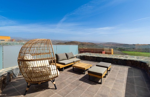 New construction fully-equipped independent villa with garden, terrace and private swimming pool, located at the foot of the golf course in the private resort Salobre Golf and surrounded by nature, with wonderful views of the mountains, the golf course and the sea, and with all services available for a perfect holidayin the south of Gran Canaria.