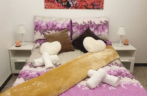 La casa cuenta con 3 dormitorios, 1 baño, ropa de cama, toallas, TV de pantalla plana, zona de comedor, cocina totalmente equipada y balcón con vistas a la ciudad.