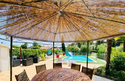 Located in Hinx, this welcoming chalet lets you experience it all. With convenient onsite parking, you'll be ready to make the 14-minute drive to Arènes de Dax or the 19-minute drive to Sourcéo Thermal Baths.