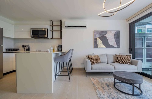 A unique building in San Francisco. This stunning 1BR features a large living room with a fully equipped kitchen, 1 bedroom with a queen size bed. It has a lovely balcony. The perfect place to experience the most authentic and luxury vacation at Panamá with family or friends.