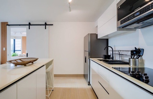 A unique building in San Francisco. This stunning 1BR features a large living room with a fully equipped kitchen, 1 bedroom with a queen size bed. It has a lovely balcony. The perfect place to experience the most authentic and luxury vacation at Panamá with family or friends.