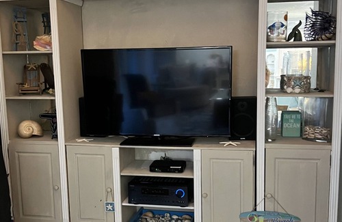 Two bed and bath beach-themed condo with washer, dryer, brand new refrigerator and private back porch. Living room has large flat-screen TV and Wi-Fi. Master offers king bed with TV and shower/tub combo. Middle room is used for storage with wine and beer fridge. Guest bedroom has a queen bed.