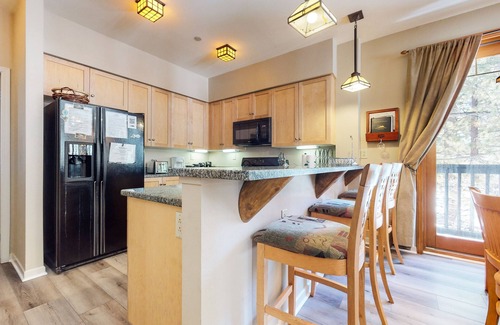 Enjoy views of the Sierra Star Golf Course or walk to Eagle Lodge. This 2 bedroom, 2 bathroom unit is well furnished and great for your family vacation. Both bedrooms have queen sized beds. Enjoy all the comforts of home with a washer/dryer in the unit, a barbecue on the patio, and WiFi access. The complex has a pool in the summer, a Jacuzzi year round and underground parking (garage clearance is 7' 6"). This unit is not pet friendly. All guests receive complimentary full access to Snowcreek Athletic Club to enjoy facilities including indoor heated pool, steam/sauna, full fitness facility, yoga, pilates and cycle studio and more. Guests will be provided two parking passes. If more parking is required than what is allotted, feel free to call our office for alternative options. Our calendar is updated in real time. (Property Certification #: TOML-CPAN-13873) Unit Code = MGR111