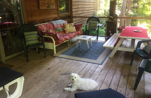 The home is beautifully appointed with comfortable overstuffed furniture,hardwood floors, granite countertops, stainless steel appliances, cathedral ceilings and much more. According to our past guests the best feature of the house is the huge screened-in porch off the kitchen. New in August 2018 a generator has been added to the home so that you will never be without electricity, Wifi, or air conditioning etc.