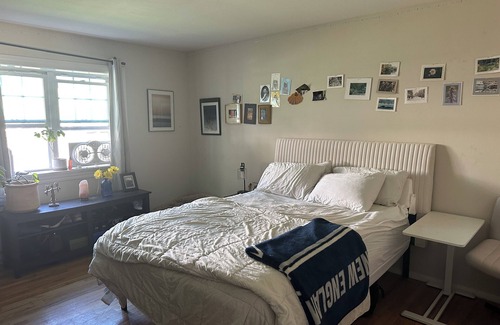 Get ready to relax in this 1-bedroom apartment in Saratoga Springs, walking distance to the track and downtown! This nice and welcoming space offers a cozy living room large couch that easily sleeps 2 people and a lovely office area with a queen air mattress. With amenities like heating, WiFi, and a treadmill, guests can unwind and stay connected during their stay. A great place to call homebase while you're away, we hope you enjoy your stay. Located directly next to a hospital surrounded by family homes, plus unlimited free parking.