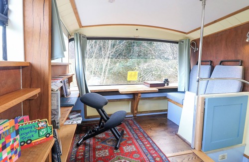 Amenities: Gas central heating. Combi oven/microwave, induction hob, fridge with freezer compartment, washing machine, cafetière, kettle, toaster, hairdryer. Selection of books and board games. Fuel and power inc. in rent. Bed linen inc. in rent. Travel cot available on request. Off-road parking for 2 cars. Non-enclosed front garden with decking, patio, lawn, furniture, gas barbecue, utensils, and fire pit. Non-enclosed, wraparound lawn. One well-behaved pet welcome. Sorry, no smoking. Shop and pub 0.7 miles. Note: No WiFi at this property, but there is signal for using your personal data and hot spotting from a device. Note: In order to protect the interior paintwork, we ask that shoes are kept outside in the shoe area provided, please bring your slippers. Note: Children must be supervised at all times due to steps within the bus and on the patio area and it may not be suitable for those with limited mobility - there is a wooden gate at the top of the stairs for extra security. Note: Some areas of the bus have low headroom, please mind your head stickers are in these areas. Note: Walter has many original features, including the old first aid kit, fire extinguishers etc.(behind glass) and we respectfully ask that these remain where they are. Note: No TV in property. Note: Although there is a curtain between double bedroom and living space, there is no door. Bicycles available to hire during your stay. Please contact us to let us know your preferred sleeping arrangements prior to your arrival