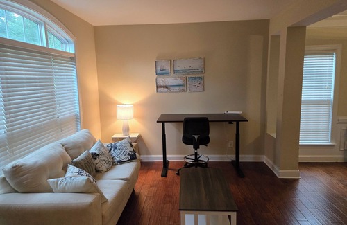 Get ready to relax in this 5-bedroom house in Charlotte. Each bedroom features a lovely queen size bed, ensuring a tremendous night's sleep for all guests. With 3 bathrooms equipped with a combined two walk in showers and two bath tubs, your stay will be nothing short of pleasant. Enjoy a first floor bedroom and walk-in shower. There is a fenced backyard with patio furniture to relax. There is a joint sitting room and office with a standing desk. The dining room has a 6 chair standard height table. The kitchen is fully functional and also has a 4 chair bar height table. The home features a tall open living room. Experience what Charlotte has to offer with a stay at our house.