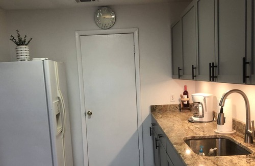 Enjoy the tranquility of the bay. Home is directly on the water with magnificent views of the East St. Andrews Bay. Private boat dock with slips. (slip use $25/day) Fish from the backyard, Plenty of boat parking and a public launch 1/2 mile away. Catch the sunset, walk along the bay beach. Duplex with shared deck. Perfect for visitors of Tyndall AFB. Coffee stop, donut shop, pizza joint and Thai restaurant within walking distance. 1 mile to a great steak house and just 15 minutes from Downtown Panama City. . "Under the Oaks Park" across Hwy 98 within a mile. The cottage is a part of Long Point Park Subdivision which is a well established neighborhood. Home is on a road which dead ends at St. Andrews Bay. There are mobile homes along the paved road leading to the cottage. (which I also own) The neighborhood is quiet and safe. Many residents have lived there for decades. The Home is updated/renovated and well stocked. Two single kayaks available $25/day. Marina just 1 mile away with pontoon rentals, bait, charter fishing options, deli and gift shop