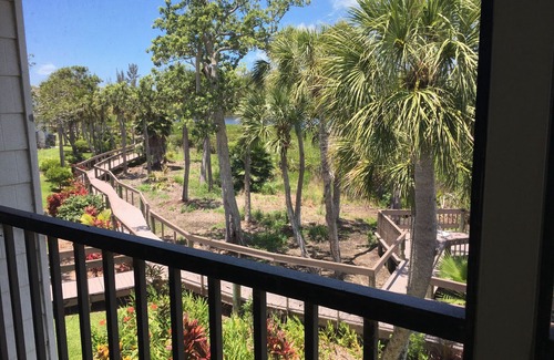 This condo has been described by previous renters as "the best condo view in Bird Bay". Because of its unique location overlooking the bay, and second floor level with vaulted ceilings with a large lanai, the scenery is breathtaking. It is also located across the street from one of the pools in the community. The unit has two bedrooms with a king bed in one and two queens in the other. The living room has a fold out couch if needed. Each bedroom has a private bathroom. The kitchen has been updated and is fully stocked. This is turn-key, everything you need from sheets, towels, beach umbrellas, chairs, etc. are all right there. There is a washer and dryer located in the unit. It is air conditioned, and the lanai is screened in. The Bird Bay Condo Association has an Olympic- sized pool and smaller community pools, which are all heated. There is tennis, an executive golf course, pickle ball, shuffleboard, basketball, bocce ball,a library, fitness room/exercise equipment, large community center, free parking on the premises. It is located one mile from downtown Venice and two miles from Venice Beach and is easily accessible by walking, biking or a short drive. While downtown there is a variety of shopping and dining choices all just over the bridge from the condo.While on the lanai you can watch bicyclists on the Legacy trail as they go over the bridge. This popular trail goes from the island of Venice to Sarasota.