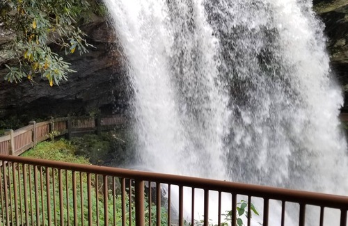 *Our guests recommend a day trip to go to various waterfalls and parks. In this order they visited: Tallulah Gorge State Park - deepest gorge this side of the Mississippi with a suspension bridge over the gorge/river for those brave enough to make the trip down the steps (more accessible view points throughout Tallulah Gorge State Park), then over to Isaqueena Falls- if you're brave you can also venture into Stumphouse Tunnel in the same area. By 1859, the State of South Carolina had spent over a million dollars on the tunnel and refused to spend any more on the project, therefore the tunnel work was abandoned. The tunnel had been excavated to a length of 1,617 feet of the planned 5,863 total feet. From there they turned back toward home and stopped at Dry Falls, a roaring waterfall which has a path you can walk behind the falls. Some pictures from these locations included to give an idea of local attractions to visit.