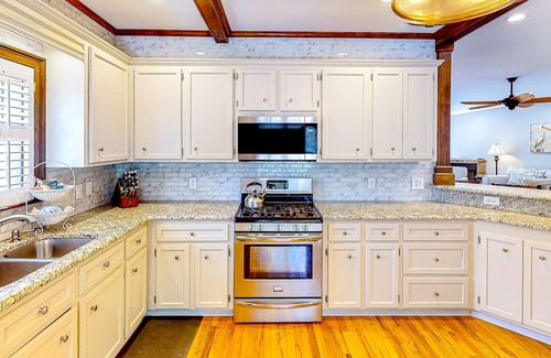 When you've had your fill of the outdoors, plush, updated seating and a smart TV are ready to welcome casual comfort in the living room. The kitchen comes well-equipped with all the major appliances for the home cook to prepare delicious meals, while guests can keep them company with a set at the breakfast bar. Everyday essentials like central air-conditioning, free WiFi, and a private washer/dryer are equipped to make your stay truly stress-free.