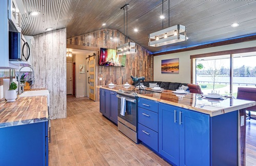 Designed with the modern outdoorsman in mind, this 3-bedroom, 2.5-bath vacation rental balances indoor comfort with outdoor entertainment, no matter the season. Create lasting memories with on-site fishing, ATVing right off the property, or watching feeding bald eagles in the backyard. At day's end, raise a glass in the game-room-slash-dry bar or gather around the fire pit as the sun sets — all with spectacular views!