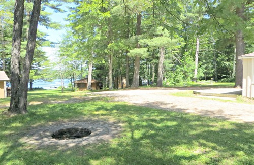 There is another small cottage on the property that may or may not be in use during your stay. The yard and waterfront area is a shared area which includes the dock, gazebo, shed (with tubes, inflatables, paddles, etc) and grassy area. There are two separate fire pits on the property so that each party can have their own campfire. We do offer some chairs on the property. The small cottage is not advertised as it is mainly used by the owners/families. Each cottage has their own deck & charcoal grill. The lawn leading up to the water is level with a small clearing for beach goers. The bottom is mostly sand with some weedy spots. The weedy areas are mainly to the right of the dock.