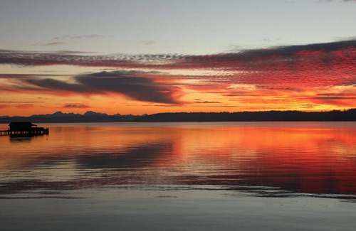 This property falls into the rain shadow and is south facing, so we often see sunshine when a lot of the Pacific Northwest is under cloud cover or rain. Located a few minutes from the town of Coupeville, and with Oak Harbor a few minutes in the other direction, State parks nearby, this basement located in a rural private enclave right on the water offers something for everyone to enjoy. You also have the option to rent this suite with a kitchen, laundry and dining area on the same level. See Wave house luxury suite with kitchen. VRBO # 2989572, or the Wave House Studio, which is a separate building, detached from the main house, and has the option for spa usage. There is also a common area fire pit, that can be used by renters of either property. See VRBO# 2617257 for studio rental with spa optional. So, if you are coming with friends, or staying alone, there are several options.