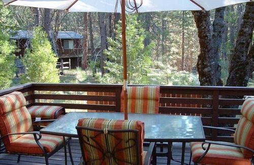 The house is equipped with a number of amenities, including a 42 in. HD TV with NETFLIX streaming movies, PANDORA, surround sound, a large collection of DVDs, music CDs, and Yosemite-related books, laundry room, fireplace, and all linens and towels provided. Dining room table seats 10.