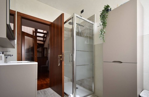 It consists of a bright and welcoming living room with sofa, TV and fully equipped kitchen with oven, fridge / freezer, microwave, dishwasher and Nespresso coffee machine, both spaces are finished with warm colors such as red and white that transmit brightness and serenity; always on the ground floor we find the bathroom complete with shower and a double bedroom with wooden floor from which you can access a terrace, climbing the stairs there is a large living room which houses two single beds with TV, all finished with wooden floor and a truss that creates a romantic framework from which there is an additional terrace where you can relax and share emotions on sunny and spring days.