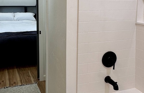 BEDROOM: Our one-bedroom space features a plush queen-sized bed with premium linens, ensuring a peaceful night's sleep. The bedroom is equipped with heat and A/C.