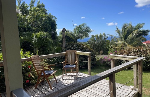 Keywords: cottage, gardens, hillside, sea views, Nevis, budget, self-contained, kitchen, bathroom, one bedroom