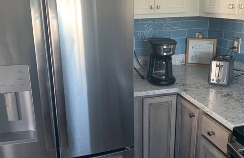 With a queen bed in the upstairs master, a full size bed with a twin bunk above in bedroom 2 (upstairs), and 2 more full-size beds in bedroom 3 downstairs, this wonderful property offers a peaceful retreat for 1 or 2 families and as many as 9 guests. WiFi, Washing machine and dryer. Outdoor shower. Fenced yard. Walking distance to several public beach accesses and the North End's famous Tiki Bar.