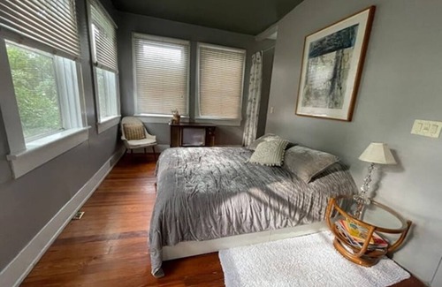 Unwind at our "shabby chic" getaway in the city. Tucked into the first floor of our quaint, artist-friendly house, this one bedroom apartment is just minutes from downtown, UAB and the Vulcan trail. Enjoy the comfort and privacy of a bedroom with queen size bed, bathroom with tub-shower, kitchenette, dining areas and reading nook in Birmingham’s beautiful Southside neighborhood.