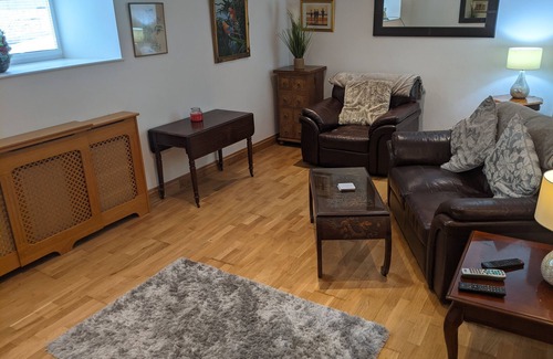 Access to the apartment is down a private side entrance with one step in. Guests must be aware there is a possibility of a small amount of noise from the above apartment but this has been minimised with extensive soundproofing. Also, the head height of the apartment is only 6-ft 8 inches. There is a key safe to the rear door. We are dog-friendly.