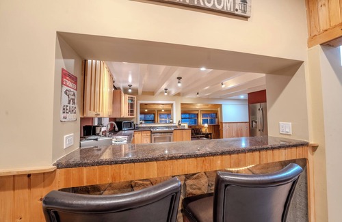 Unwind in the hot tub, gather around the fire pit for cozy evenings under the stars. Inside, the home is equipped with multiple HDTVs with plenty of streaming services, ensuring endless entertainment options. The fully stocked kitchen, game room with a pool table, and mini bar add to the home's charm and convenience. A dedicated workspace and washer/dryer are also available for your use.
