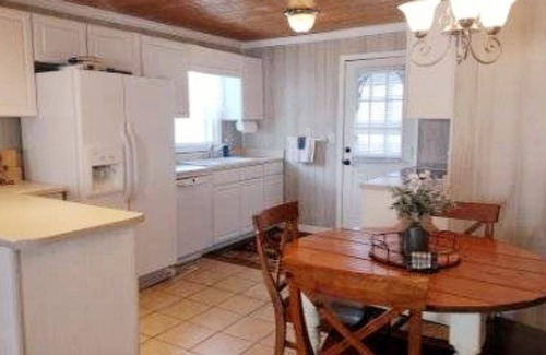 Located in the Paris Landing area near Buchanan's Resort. The cottage sits on 3.5 lots and is near scenic woods with a cove less than 150 yards away. If you have a larger group we now own BACK TO BACK COTTAGES. This beautiful place is right next to VRBO #2399838.....check it out!. This 2 bedroom, 1 bath is the perfect getaway and location, location, location is the best way to describe this little gem! If you are a fisherman, hunter, general water sports enthusiast, or just want some peace and quiet in your life then this is the place! It is about 5 minutes from Paris Landing State Park. The park offers a beautiful and challenging par 72, 18-hole golf course. Sand beach and a Marina with public ramps and slips. Right in the neighborhood (2 minutes away) is Buchanan Resort where you can rent boats, kayaks, and boat slips! The cottage has full internet and WIFI capabilities. There are two TV's that are ROKU and ready to stream whatever you wish so bring your log-in info and you are all set! Central Air for those times when you need a break from the heat. The knotty pine interior of this cabin with the whitewash panel walls makes this feel spacious and comfortable. Enjoy your morning coffee or evening beverage while sitting in the beloved screened in porch that overlooks the cove area at the end of the road. There is a full kitchen (pots, pans, silverware, cups, etc.) with newer appliances and basically everything you need to cook your meals. There is an area to eat with a kitchen table. The living room is spacious and has a sofa, love seat and two recliners with a large 58" Roku TV for your enjoyment. There are two separate bedrooms. One has a queen bed. The other bedroom has two twin beds and a door that goes to an outside deck. The bathroom is conveniently located in the middle of the cabin and has a full tub/shower combo. There is a charcoal grill and fire pit with adirondacksfor your evening outside pleasures Take your kayaks, water toys, golf cart right down the road and have a blast at the cove! There are multiple boat ramps within a mile of the property and the infamous Buchanan Resort is 1.1 mile from the front door. Paris Landing State Park is approximately 7 miles away. This cottage is located on 3 and a half lots that give you plenty of elbow room. The space also has an extra lot that is level and will accommodate your toys with plenty of room to not only park your other vehicles, but also has a pull through drive so that you may keep your boat or other toys hooked up and pull straight through without having to unhook or maneuver around to back your rig up. The cove is approximately 150 yards from the cabin and during summer pool has a very useful boat ramp that will virtually work for any boat to load and unload. Special Note for Pets: We love dogs and want to remain a pet-friendly rental but there are a few rules that MUST be followed. Pet fee will be 50 dollars. No more than one dog/cat under 50 lbs. Must stay off furniture and beds at all times. Dog must be kenneled when alone and excrement in the yard must be picked up and discarded. Any accidents inside the house must be cleaned immediately. We do have a security camera located in the front of the cottage that is aimed only at the driveway entrance. No exceptions to these rules or the deposit will be forfeited. Thank you in advance for your cooperation.