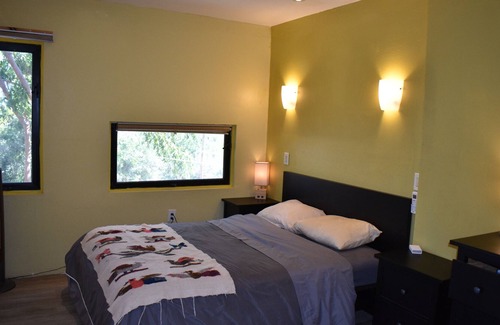 Two bedrooms plus a loft all with new pillow top queen beds. Sleeps 6 on 3 queen beds. Unique shipping container, loft-style home with beautiful landscaped, shaded courtyard. The house is perched on the hill just minutes to the beach with panoramic views of the ocean. Located in between La Ventana. It's centrally located close to restaurants bars and coffee shops. The house is built from two 40 foot shipping containers spaced 8 feet apart. One wall was cut out completely and then used as the roof between the two containers. Speciality ceramic paint and spray foam insulation was used to insure the temperature in the house is comfortable. There is opening windows in the upper section and in all directions in the lower section to allow a fresh breeze no matter the wind direction. The main part of the house is an open floor plan with a loft. The loft has 4 feet of headroom in front sloping down to 3 feet in back. It's very cozy with great views from the queen size bed. The second bedroom is private with a half bath and air conditioning. The outside of the grounds are landscaped with shade trees and flowering plants watered from the gray water of the house. There is a outdoor dining table and hammocks for relaxing. A 2 PERSON KAYAK AND AN INFLATABLE SUP INCLUDED.
