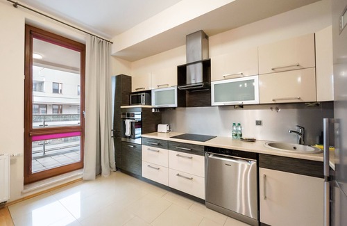 Wilanów Violet Apartment has a practically furnished living room with a kitchenette, a bedroom with a free-standing bed, a bedroom with two single beds and a bathroom. Guests have a variety of amenities at their disposal, including an oven, fridge and kitchen accessories. You are sure to find everything you need for a comfortable and enjoyable stay here. Additional features include a cosy balcony and a parking space in the underground garage.