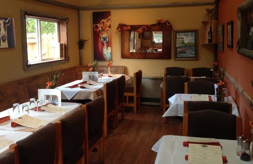 Take a break and unwind at this peaceful oasis nestled in the trees at Norwegian Wood Ranch. This classic frame cabin contains an exquisitely rustic-boho decor with a comfortable bed, sink, mini fridge and cozy front porch. You and four other guest units share a private "outdoor" bathroom with a potty and a shower (with instant hot water!). During your stay, be sure to get in a round of golf on our very own unique 9 hole par 3 course -- details available in the bar or on the mailbox next to the front door. And speaking of bar, be sure to join us for a drink or make reservations for dinner Thursday through Saturday at our fabulous fine-casual Highlander Bar and Grill. Enjoy a stroll around the ranch along Magpie Creek to see our Highlander cows, chickens, and the famous "Bacon" the pig.