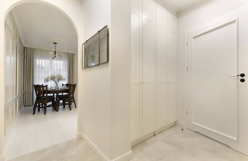 A bright, white and beautiful apartment makes us and all our senses rest in it. The living room with kitchenette has a fold-out sofa bed for two people. The bathroom will allow you to relax even more thanks to the large hydromassage bathtub. A bedroom with a double bed and a high-class mattress will soothe our senses. All rooms are dominated by the colors of beige, white and nature. The apartment is designed for four people.