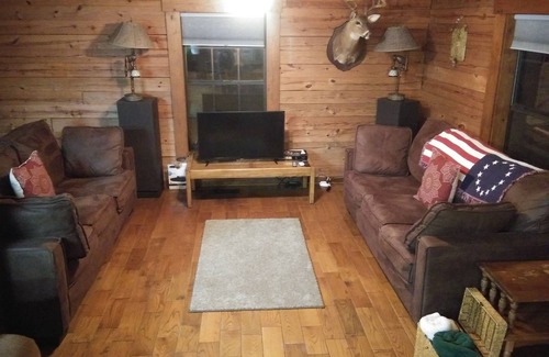 Welcome to Wilson Lodge and beautiful Heber Springs, AR. We are nestled in the foothills of the Ozark Mountains and home to our 40,000 acre Greers Ferry Lake and the world famous Little Red River. Wilson Lodge is a hand built log house nestled in the the seclusion of a 450 acre farm. The Log cabin is a 1330 square feet hand-built cabin with a wrap-around covered porch to enjoy the beautiful surrounding scenery. We provide all bed, bath and kitchen linens. The lower level includes an open beam design with a spacious living room and dining room with a wood burning stove, a full kitchen with all kitchen appliances and utensils, a full bath with a shower and laundry facilities. The upper level includes 3 bedrooms and a full bath with a garden tub. The Lodge comfortably sleeps 7. Bedroom #1 - a full size bed with a twin bunk bed on top, Bedroom #2 and #3 - two twin size beds. The property has a horse shoe pit, outdoor seating, picnic area, fire pit with wood and a large shaded yard with plenty of parking for cars and boats. We are within 10 miles of several access points to Greers Ferry Lake and the Little Red River. For the horse enthusiast we offer trail rides on a limited availability. For the hunter and fisher we have white tail hunts and fishing available on the property.