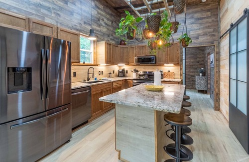 Wolfhaven sleeps seven and is perfect for a leisurely, fun-filled family getaway or for a couple of parents treating their kids' to their first fishing excursion. Complete with a hot tub, games, and YouTube TV, this home has something for everyone. Inside, there are open spaces, plentiful windows letting in loads of natural light, and modern decorations. The airy rooms are cozied up with brand new, comfortable beds. Completely upscale, the kitchen is outfitted with ample cabinets and high-end appliances to make it easy to cook the day's fresh catch and comfort food side dishes.