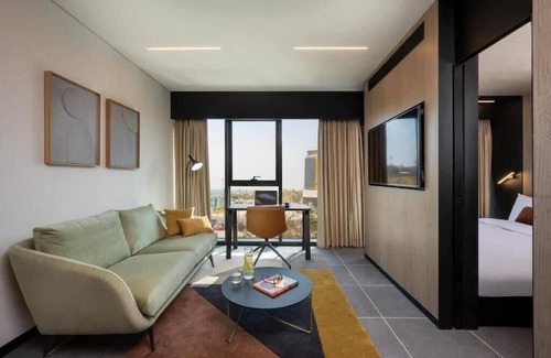 Bat Yam is a perfect destination for both business travelers and families on vacation. Families can enjoy the stunning beaches of Bat Yam and make the most of Tel Aviv's attractions. This beautiful 1BR suite has a magnificent view of the city and the hotel offers Gym, laundry service, Wi-Fi, among other benefits that will make you feel at home.