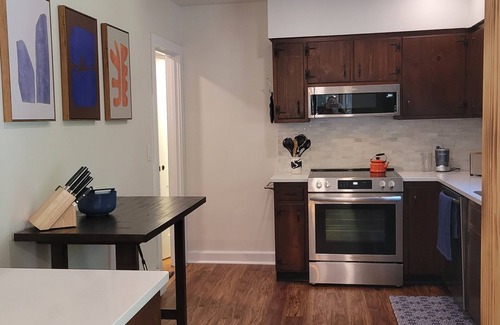 2 and a half wooded acres and lovingly restored country house await you in the charming town of Esopus. Relax by the babbling stream, read a book on the large deck while deer graze in the orchard, or sit by the fireplace after a day of hiking and exploring. There is plenty of room for your family to roam with an upstairs bunkroom that sleeps 6 and a main floor bedroom with a queen bed. Both bathrooms and the kitchen have been renovated and updated with modern appliances while maintaining a charming old fashioned feel. The large dining room seats 8 and there is plenty of outdoor seating on the orchard facing deck and by the stream. The property is located in the Hudson valley with hiking, biking, river water sports minutes away. Quaint waterfront dining and shopping are within 10 minutes in the nearby town of Kingston, the charming town of Rosendale is 15 minutes away with more dining and shops, and New Paltz is 20 minutes away with all that it offers.