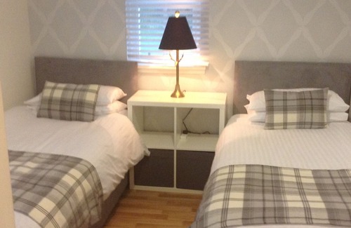 One double bedroom with king size bed, one twin room with two single beds. Comfortably sleeps 4 adults or a family. There is a travel cot available for infants under 2 years