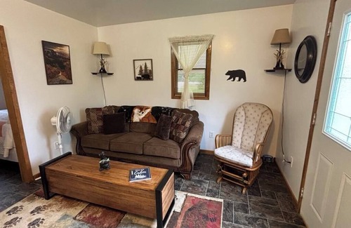 The Harbor Beach sunrise is waiting for you at the themed "Backwoods Bungalow." A cozy 1-bedroom cottage that features a comfortable full bed, perfect for a good night's sleep. With heating and AC, you'll stay comfortable no matter the weather. The bathroom offers a refreshing shower, all linens and basic necessities including blow dryer. The open concept living room/kitchenette includes a mini fridge and microwave, utensils, dinnerware, dining table and chairs to pull out when needed, a queen-sized sofa bed for 1-2 extra guests, smart TV and WIFI (but who wants to watch tv when you have the abundance of nature and exploring at your doorstep)