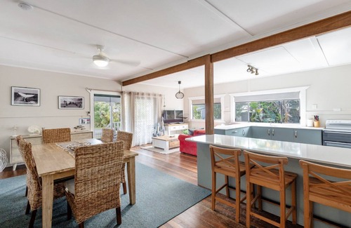 This cosy cottage overlooking the Wooli River is the perfect family getaway. Ideal for families seeking a relaxing break, you can easily keep an eye on the kids playing in the river