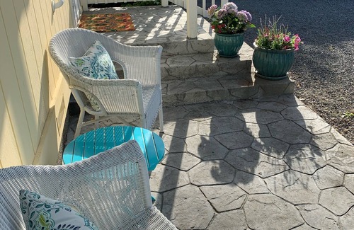 For those of you coming to the area to cycle, participate in our year round festivals and events or just to relax, our cottage is perfectly located and comfortably furnished with a full kitchen, bathroom and comfortable king and queen beds. Inside you will find all the necessities of modern life including WiFi, cable television and even a washer and dryer. Outside you have a beautiful covered deck accessible from the living room and master bedroom which overlooks a fully fenced backyard furnished with a BBQ, outdoor eating area, outdoor living room on the deck, hot tub, bocce ball court and lots of privacy.
