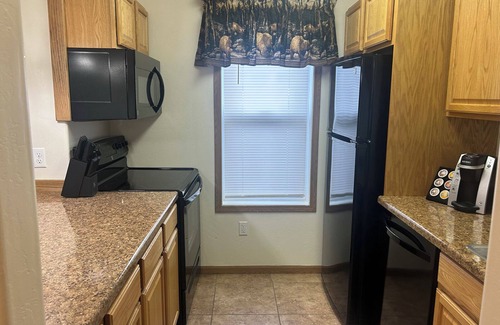 Great spaces continue outside too! Grill out on the patio with our electric grill, or enjoy your morning coffee while you watch the local wildlife. Our fenced-in courtyard (with a picnic table) is fun, safe, and secure for our furry, four-legged guests.