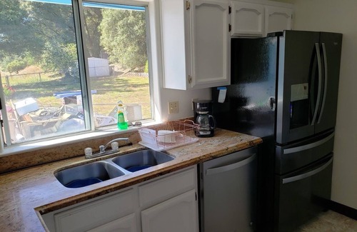 Perched on a hill in the Sierra Nevada foothills, this home is located on 2.25 acres and has lovely views of the sunrise from the front yard. The entire home is available to use, including laundry room, front yard, and fenced back yard.