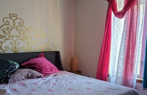 One room has a King-size bed, with a temperapedic matress and a private bathroom. Another room has a queen size bed. 2 smaller rooms have bunks. Each room has unique personality and sun exposure. Some rooms features artifacts from Jaipur, the Pink City of India and canvases brought from St. Petersburg, Russia, which make the experience of staying here very special and unique. This is a magical rustic place for somebody who can appreciate healing energy and art.