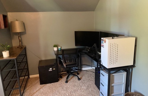 Two story home located in a quiet neighborhood only minutes from the golf tournament. Master bedroom is located on the first floor and has a King sized bed. Each additional bedroom has a queen sized bed and a futon. Two full baths, 2 large decks with outdoor seating, swimming pool, privacy fence, washer/dryer, gas grill. Open floor plan. Two full baths. Gas stove and fully stocked kitchen. All linens included. Daily maid service available for additional fee.