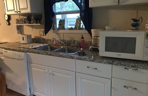 From Pirate Lover to the ocean is a four minute drive. Between the house and the beach you will pass a small mall, several restaurants, grocery stores and ice cream parlors. Pirate Lover has a yard that is perfect for small children. There is a picnic table w/ choice of charcoal or gas grill. Burnsville is a nice street for strolling and bike riding. The kitchen has a full size refrigerator, full size stove and all the pots, bowls and dishes to make your stay a perfect one. Pizza can be delivered to your front door from two or more locations, and Walmart delivers groceries to your door! At the end of the street you can see boats go by on the waterway, and you can often hear the surf.