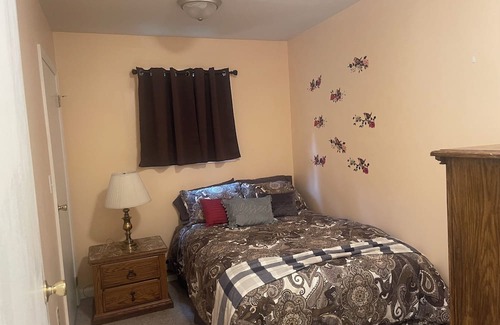 We have 3 bedrooms, 2 with aircon, small one with powerful fan, also the livingroom has 2 couches that becomes bed, one queen and the other one full and upon your request for more than 6 guests we can provide bed sheets and extra towels. Any extra guest above 6, will be charged $50/night at property. The living room area is cooled in summer by a high capacity ac unit and adițional fans. Smoking or vaping are aloud on the deck and property ground only. Pets are allowed, with no extra charge, on case by case, upon contacting us. You can use a fenced grass area for your pets, kids and pit fire activities.